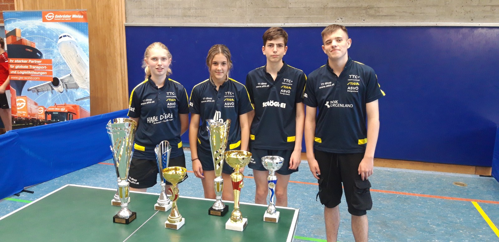 | Die erfolgreiche Mannschaft des TTC Oberpullendorf (Elina Fuchs, Pauline Tajmel, Fabian Wolf und David Laczkovits, v.l.n.r.) |