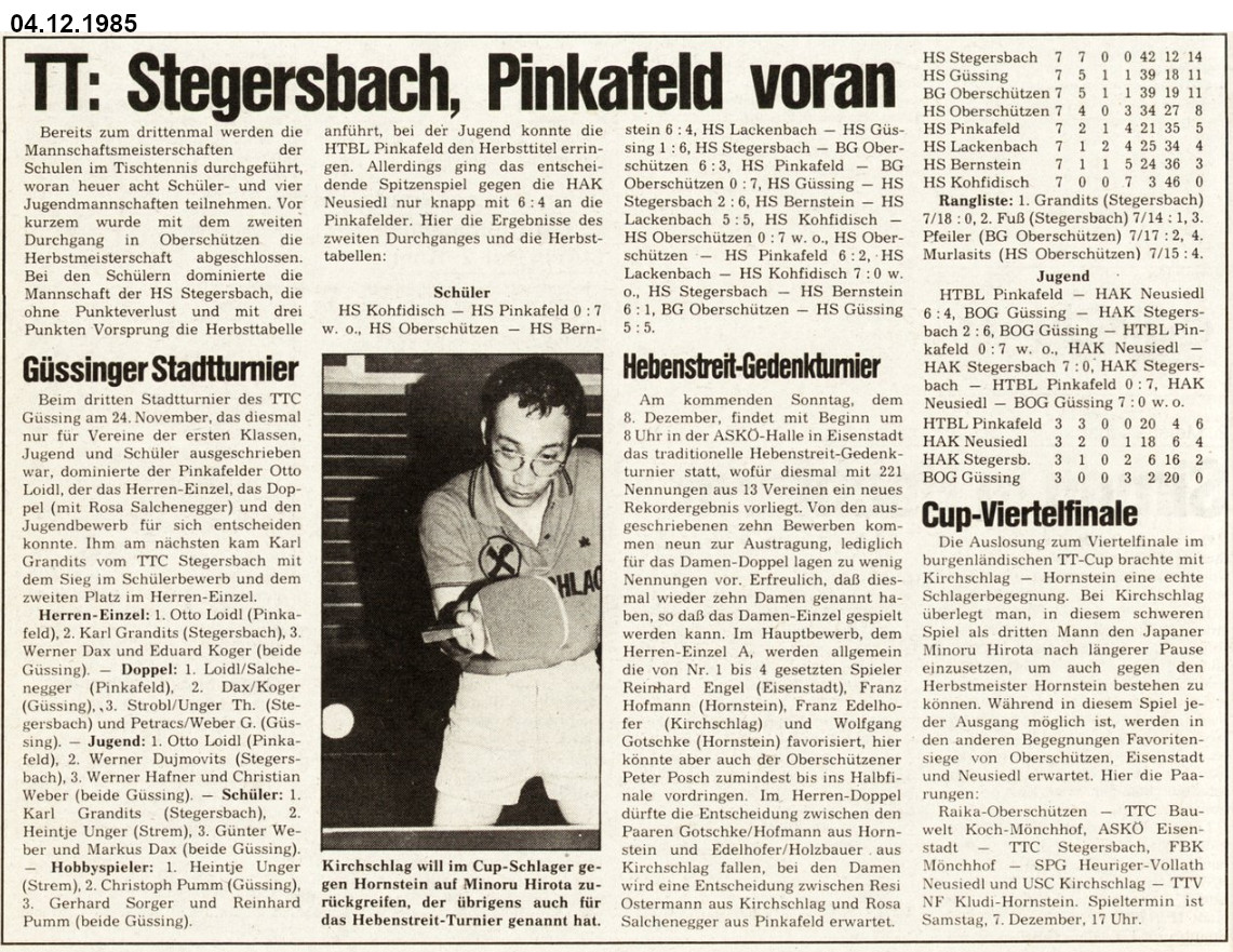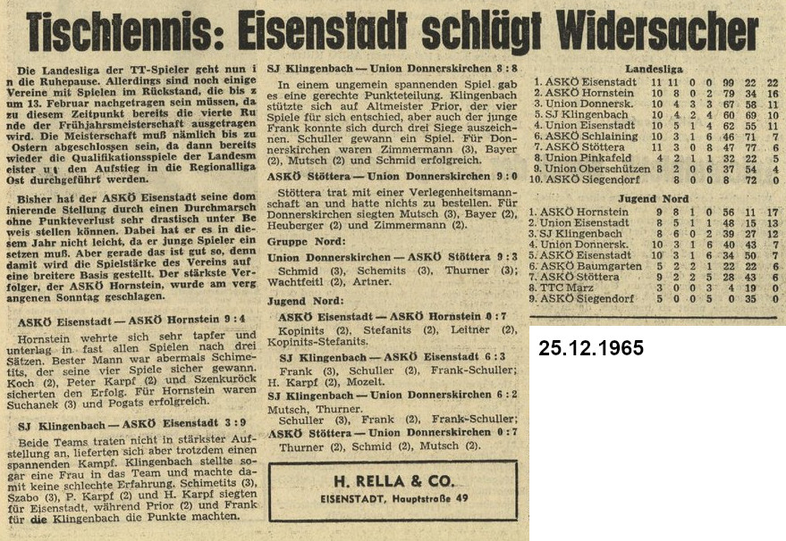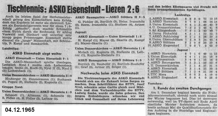 Was gab es für Tischtennis-Neuigkeiten vor 30, 40, 50 und 60 Jahren? Können Sie sich noch erinnern? Diesmal ist der Dezember dran.