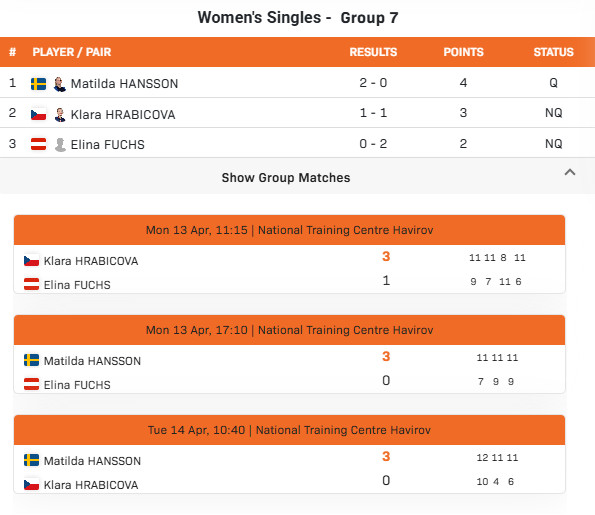 Elina Fuchs durfte erstmals bei einem WTT Feeder-Turnier der allgemeinen Klasse in Havirov (Tschechien), welches von 13.04.-17.04.2026 stattfand, teilnehmen. Spiel konnte sie leider noch keines gewinnen.
