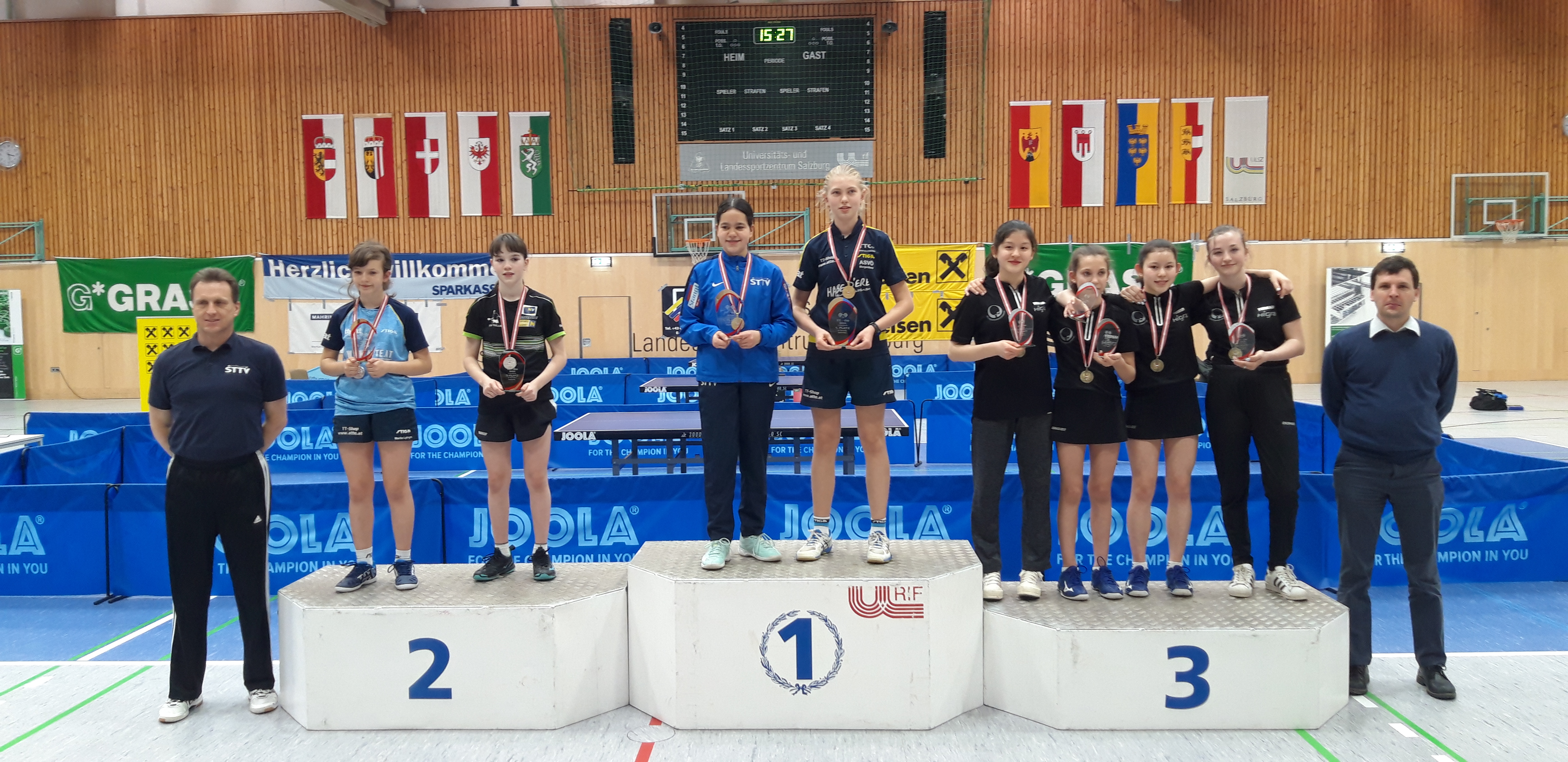 Bei diesen Meisterschaften wurde vom BTTV auch wieder einmal eine weibliche Mannschaft gestellt, Elina Fuchs und Pauline Tajmel kämpften brav und konnten schlussendlich den 6. Platz erreichen. Dabei wäre bei etwas Glück viel mehr drinnen gewesen: In der Vorrundengruppe B schaffte man 2 Siege (gegen Steiermark und Vorarlberg) und verlor leider ganz glatt gegen WIen mit 0:3. Das bedeutete in einem Dreierrad aufgrund des schlechteren Spielverhältnisses den undankbaren 3. Platz.