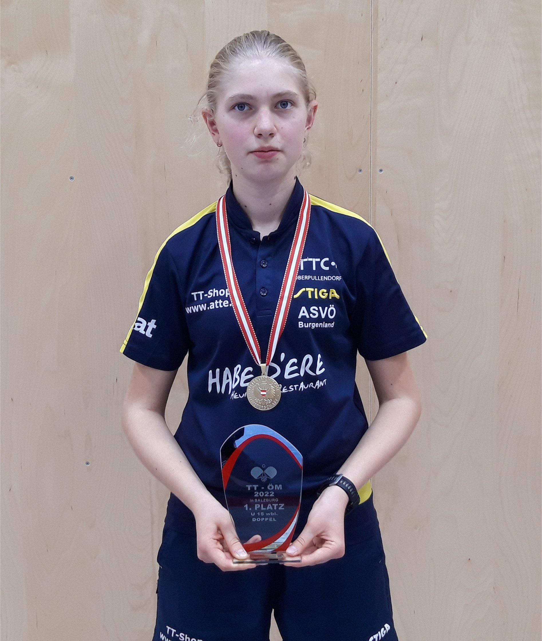 Herausragender Erfolg für Elina Fuchs bei den Österr. Meisterschaften der Altersklasse U15. Sie gewinnt gemeinsam mit ihrer Partnerin Julia Dür den Bewerb Doppel weiblich und setzt so einen weiteren Schritt in ihrer Tischtennis-Karriere.