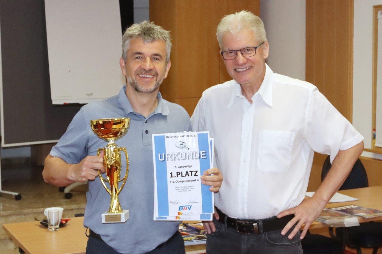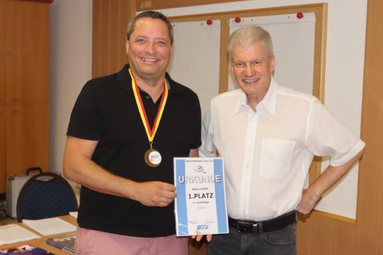 Der Ranglistenerste der 2. Landesliga, Klaus Leirer mit Präsident Helmut Jäger | |