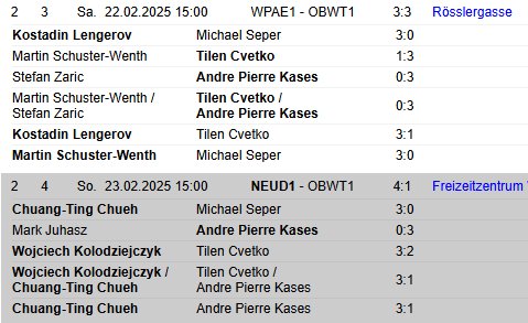 Doch leider gingen die letzten beiden Spiele an Alterlaa. Kostadin Lengerov besiegte Tilen Cvetko mit 3:1 und Michi Seper hatte beim 0:3 gegen Martin Schuster-Wenth keine Chance. Somit trat man mit einem Unentschieden die Heimreise an, was beide Mannschaften nicht wirklich weiterbringt.