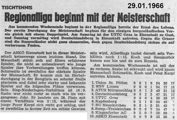 Was gab es für Tischtennis-Neuigkeiten vor 30, 40, 50 und 60 Jahren? Können Sie sich noch erinnern? Diesmal ist der Jänner dran.