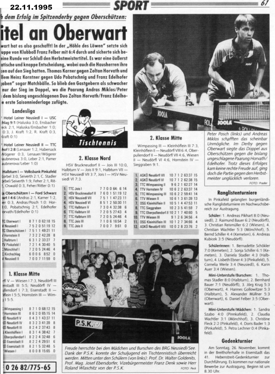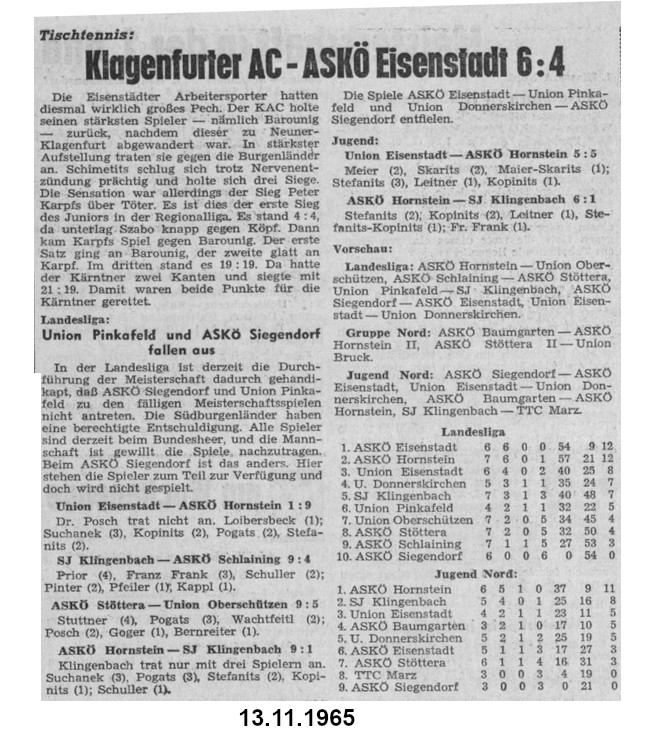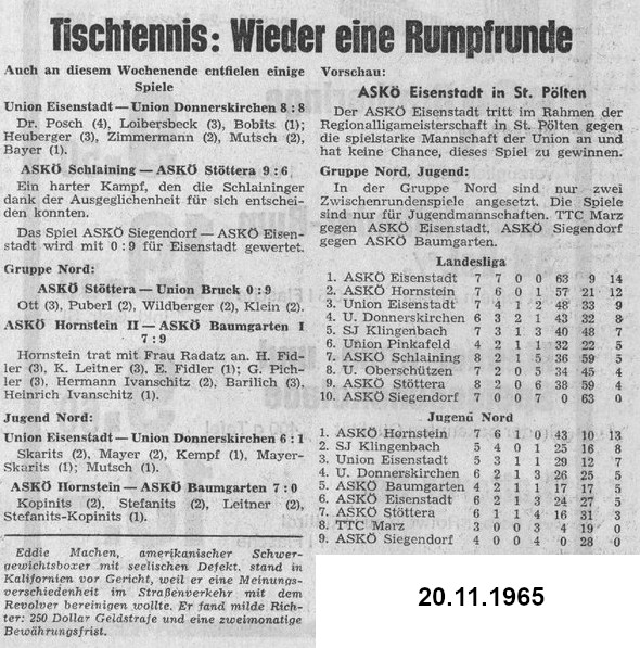 Was gab es für Tischtennis-Neuigkeiten vor 30, 40, 50 und 60 Jahren? Können Sie sich noch erinnern? Diesmal ist der November dran.