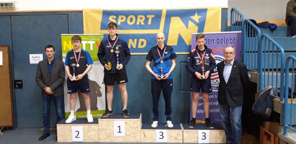Im Doppel männlich war Andre Pierre mit seinem Partner Marc Sagawe (NÖTTV) ebenfalls an Position 1 gesetzt, auch hier ging es bis zum Finale jeweils mit einem klaren 3:0-Erfolg weiter.